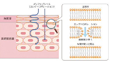 エレクトロポレーションという原理を利用することで、皮膚にダメージを与えることなく美容成分を大量に導入する事が可能です。