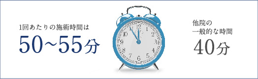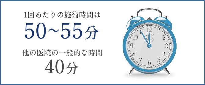 お客様には確実に効果を実感していただきたい。そのため、当院では他院よりお一人様あたりの施術時間を長く設けています。