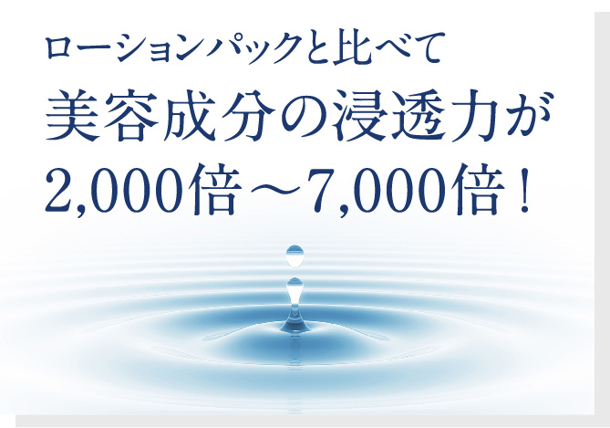 肌の深部まで美容成分が届くので、市販のローションパックの2,000倍~7,000倍の浸透力があり高い効果を実感いただけます。