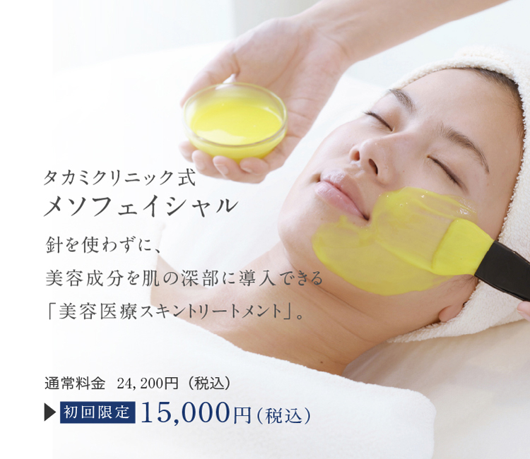 日本人の肌に合わせビタミン、ヒアルロン酸などをベースに保存料や不純物を極力カットした、安全性の高いタカミクリニックオリジナル導入剤を使用することで、お肌に負担をかけずより高い美肌効果を実感できます。